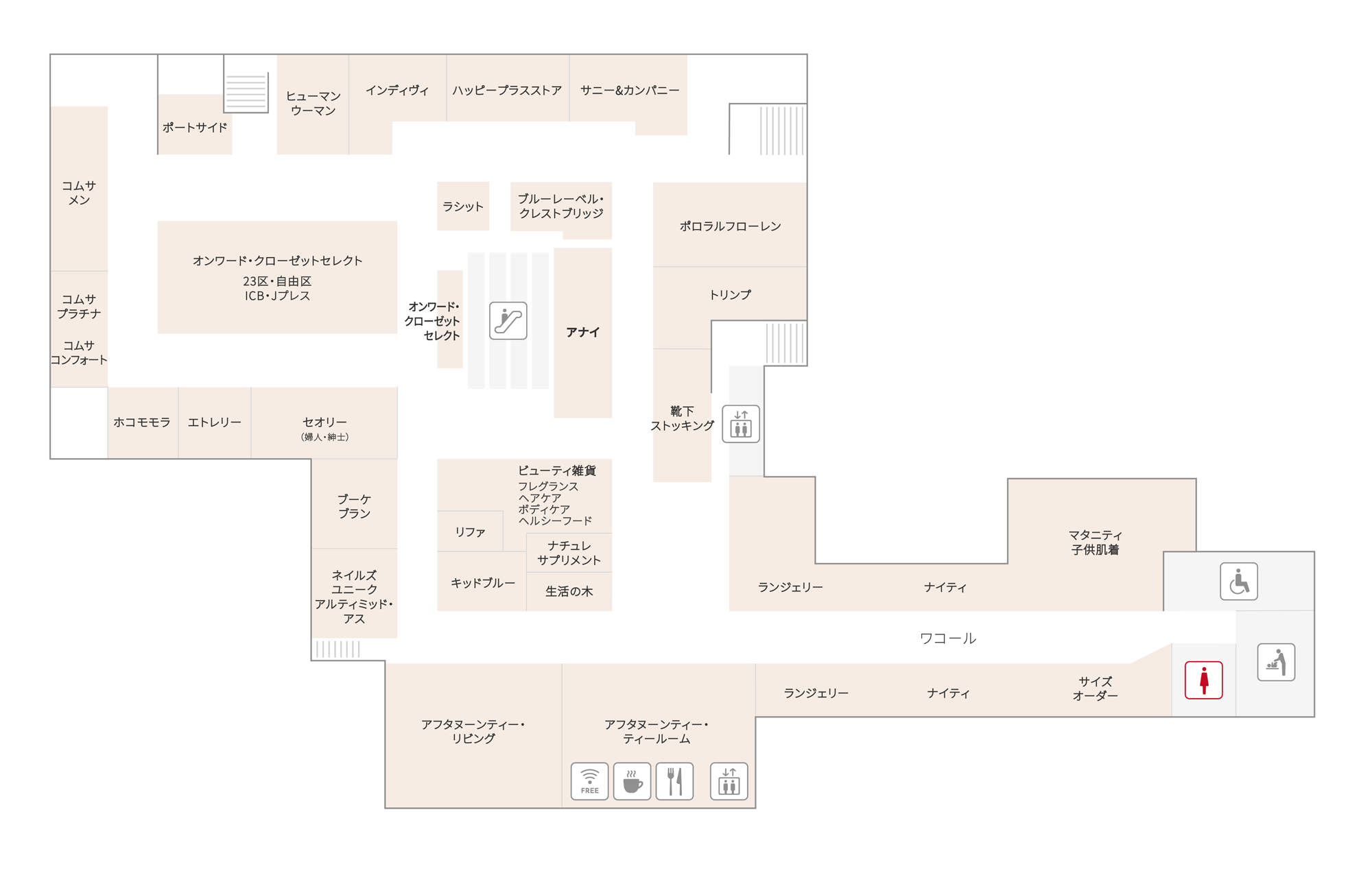 婦人服/ビューティ雑貨/婦人・子供肌着/マタニティ/ナイティ/カフェ