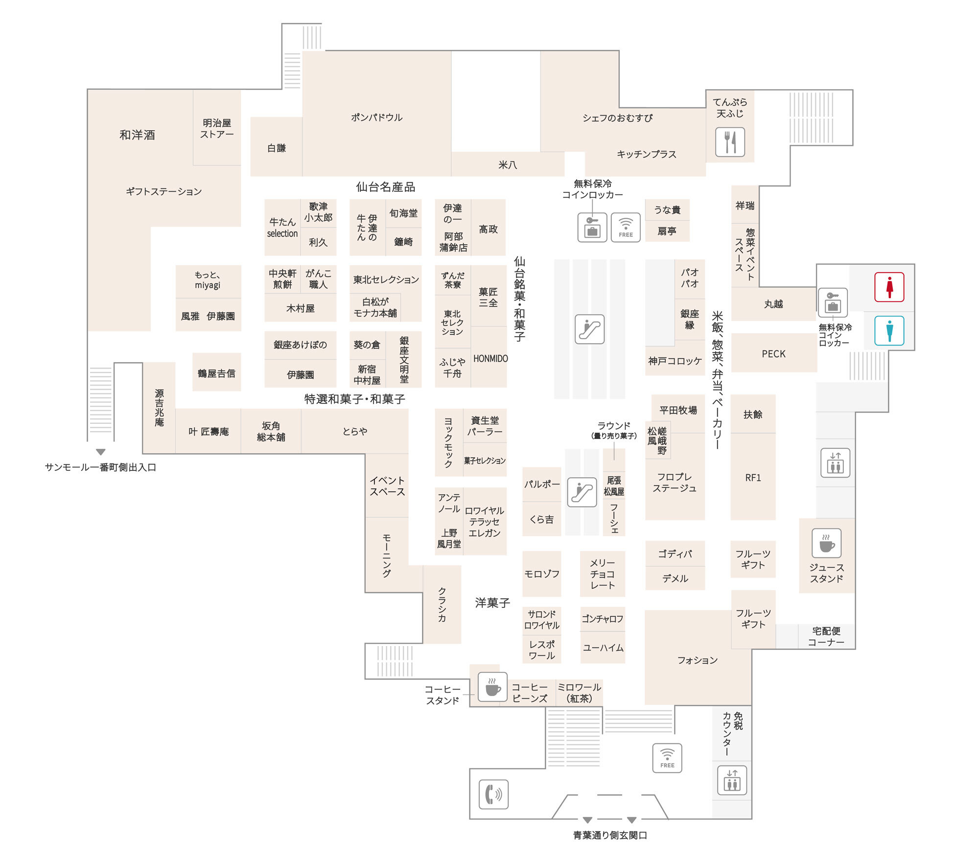 グルメワールド(菓子・名産品・惣菜・和洋酒売場)/免税カウンター