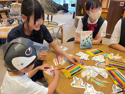 - 仙台育英学園高等学校の学生たちと一緒に、塗り絵やシジュウカラガンの帽子のデコレーションで遊びませんか?
