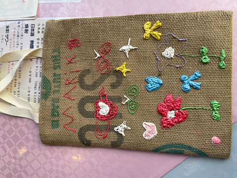 コーヒーが入っていた麻袋をバック加工したものに