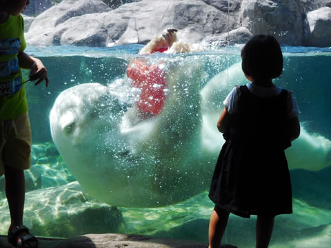 - 午後2時に、ホッキョクグマプール前ビューポイントのひな壇に集合してください